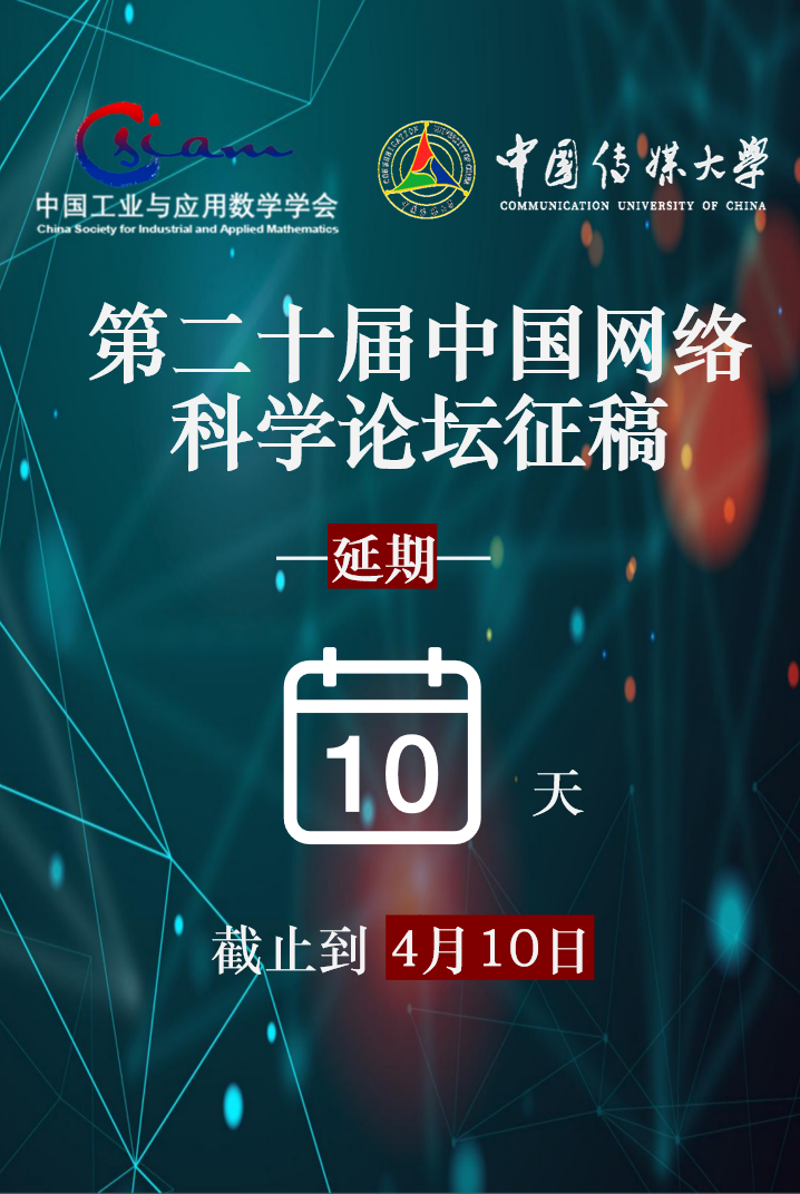 1.请作者在2024年4月10日前通过中国工业与应用数学学会投稿系统https://s.csiam.org.cn,选择CNetSci 2024(第二十届中国网络科学论坛, 北京, 2024年5月17-19日)直接投稿,提交论文摘要和PDF文件(包括长摘要)(准备好您的论文题目和摘要和论文PDF文件(包括长摘要),报告人的姓名、单位、联系信息)。