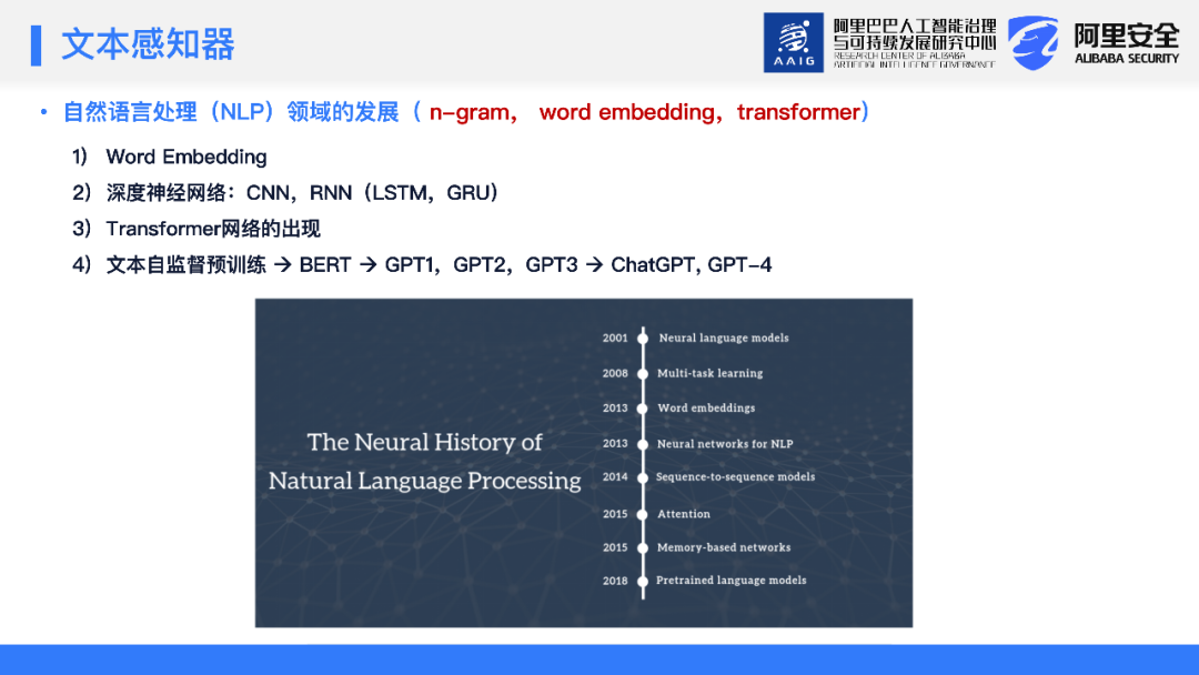 1、Modality-Interaction: 我们首先关注不同模态之间的交互方式。在此策略中,各个模态的表征向量不是独立学习而是通过交互来彼此影响,从而共同优化整个架构的学习过程。2、Task-Interaction: 此方法允许不同任务中针对各自方法的向量互相影响并进行记忆。这有助于网络在处理多任务时实现信息的共享和保留。3、Query-and-Match: 在识别不同任务时,在输入端进行携带匹配。这意味着模型会预测输入数据与相应任务提示是否匹配,进而在执行任务时优化选择机制。接下来讨论如何将多模态生成式大模型应用于安全防护业务之中。当前,随着信息时代的进入和AI2.0时代的到来,生成式学习成为了当前科技发展的一个核心主题。我们观察到,从2020年至今,整个模型网络参数量呈现显著激增的趋势。为什么业界如此热衷于增加网络参数呢?因为这与人类自身的发展趋势类似:人类脑容量的发展与智力的提升之间也存在相似的关系。在一定的时间节点之后,人的脑容量经历了递增的阶段,随之而来的是智力的突飞猛进发展。类比到学术领域,这被理解为模型的“涌现能力”。我们会围绕人的智力现象出发来探讨大模型是否也能显现出类似的涌现能力。通过趋势表现的实验发现,确实当模型的网络参数累积到一定程度之后,模型展示了这种涌现能力,如我们现在见到的ChatGPT或GPT4.0。大模型为何被视为开启了一个新的AI2.0时代?我认为有几个核心的理由:1、知识表示与调用的新方式:大模型可能正在替代我们原本的关系型数据库和互联网交互方式。其交互相当于一个集合信息的数据库,不仅能存储信息,还能通过自然语言与用户进行交互,这被认为是接近于AGI的状态。2、交互方式:大模型可以通过自然语言进行交互,运用提示词来调取特定的能力,模糊了算法和运营岗位之间的界限。如果大模型能力足够强,运营人员也能通过对任务的理解来优化模型。3、长上下文的建模能力:目前很受关注的是模型如何处理长序列的上下文。这个方向我认为非常有意义。如果一个大模型能够编码个人一生的信息,在输出时可能就能反映出该个体的价值观和生命状态。在近期的英伟达GTC大会上,也有提到,我们应该更多地把精力投入在模型的推理能力。模型通过数十亿的数据训练后已具有一定的能力,就像人一样,可以通过接受周边的信息作为输入,然后进行推理与学习,不断地进化。这是一个非常有趣的概念,也许是未来研究模型优化时考虑的方向。围绕大模型开展的研究后,出现了几项典型的工作,其中包括综合视觉、听觉、语言三个维度的具体思维多模态模型。这些模型的性能展示了令人惊叹的能力,例如OpenAI的GPT-4V和Google的Gemini。多模型检索式增强是大模型技术广泛应用后被频繁讨论的另一个点。这一点实际上是关于如何让模型能在其本身知识欠缺的内容领域内实现更优的理解和应用。至少对我们的应用安全领域来说,这是一个极有价值的探索点。因此,我们也深入研究了这一方向。在对大模型的这些基本理解和认知基础上,我们开始反思在应用安全场景中,大模型应该采取什么样的形态。因此,模型生成的内容需要具备以下几个维度的输出能力: