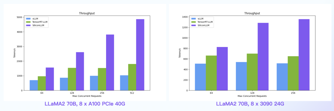 数据中心+PCIe:SiliconLLM的吞吐最高提升近5倍;消费卡场景:SiliconLLM的吞吐最高提升近3倍