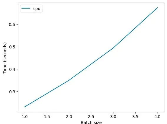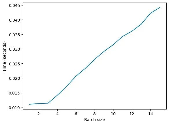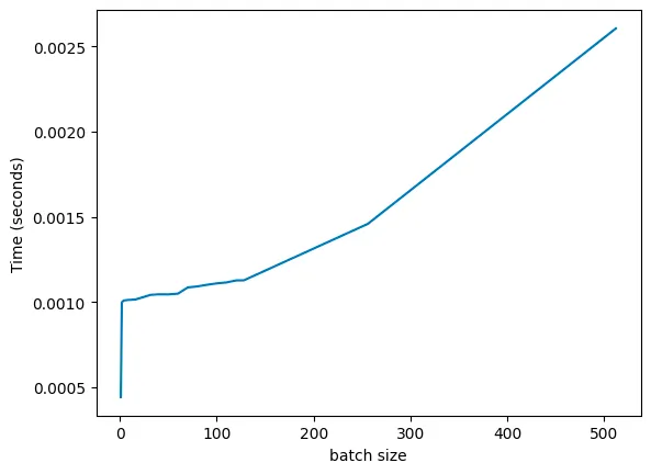 对于任何现代深度学习系统而言,执行批处理是最重要的一项优化。批处理是指,在推理过程中不是发送单个输入,而是发送一个大小为N的输入批次。通常情况下,根据批次大小N的具体值,这项优化可以视为“免费”,因为整个批次的处理时间与处理单个示例的时间几乎相同。为何会这样?按理来讲,批处理不应该免费,毕竟要多做N倍的工作。对于简单的神经网络模型来说,这并不是免费的,批处理计算确实需要N倍的计算资源来运行。如但果在CPU上运行这种批处理,你会发现这一点确实存在(在Colab上ResNet50的平均推理时间)。