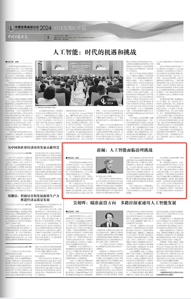 中国发展高层论坛2024年年会于3月24日在京召开。在人工智能发展与治理专题研讨会上,清华大学文科资深教授、苏世民书院院长、CIDEG学术委员会联席主席薛澜表示,人工智能的发展面临一系列风险需要防范。从人工智能治理的角度来看,有以下五个挑战。
