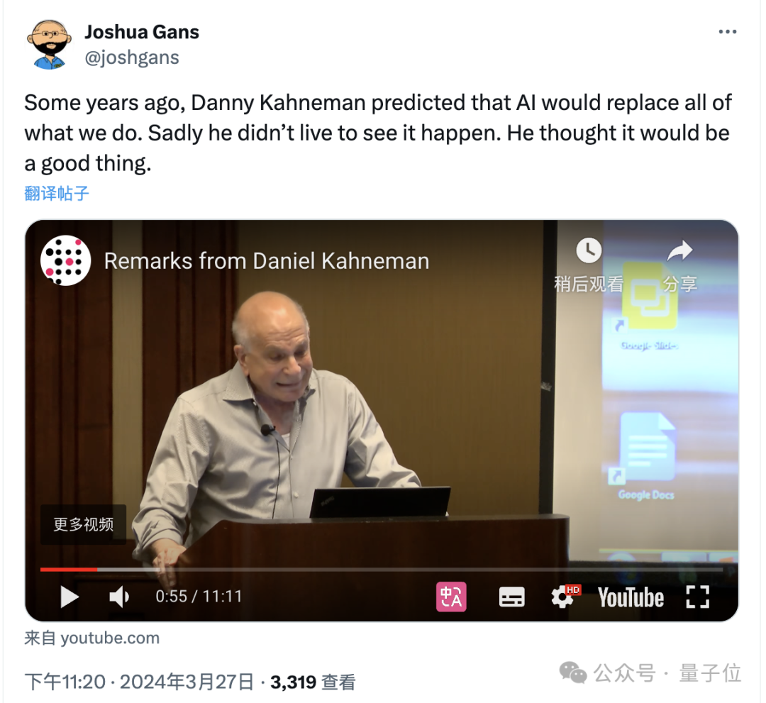 尽管并未直接从事AI研究,卡尼曼的名字却随着大模型热潮在AI领域被反复提及。