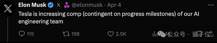 不只是Meta,马斯克同样坐不住了,表示将为特斯拉的AI团队涨薪。