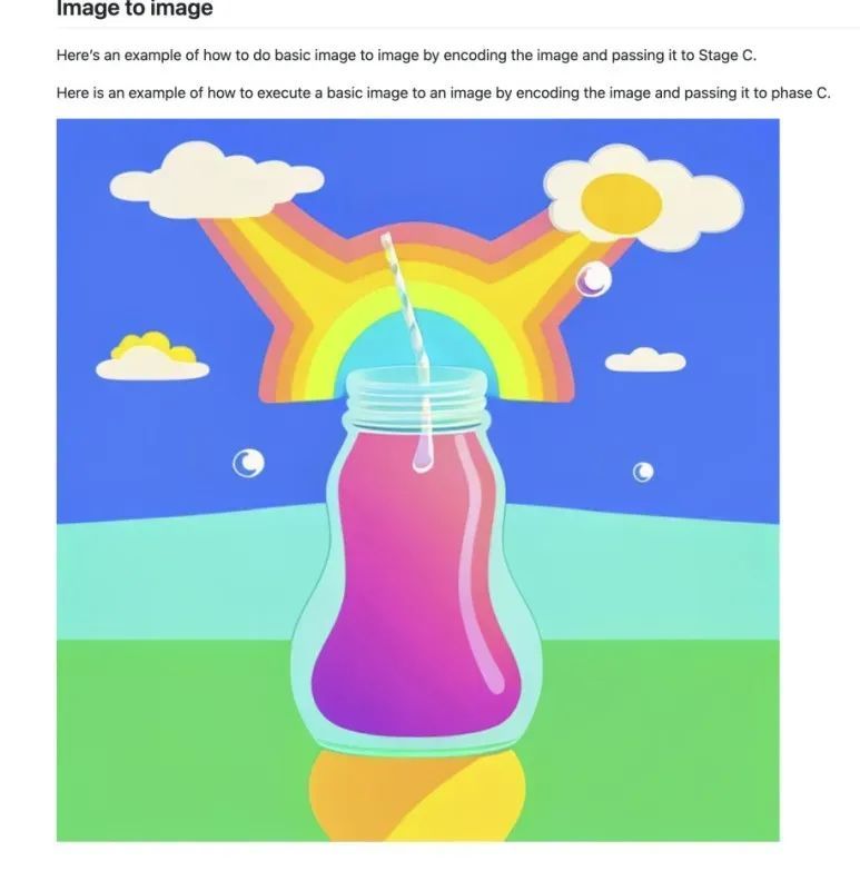 Stage A 是 VAE 模型,Stage B 和 Stage C 是扩散模型。输入提示词后,Stage C 模型会根据文本生成 24*24 的低分辨率潜像,输入到 Stage B 模型中放大,然后输入到 Stage A 模型中再度放大,并转换为像素空间,最后生成图像。