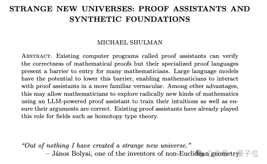 数学家Michael Shulman认为,现有的计算机程序如Lean证明助手,能够验证数学证明的正确性,但它们专门的证明语言对许多数学家来说是一道门槛。