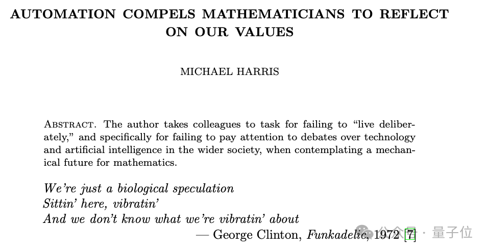 纯粹的数学家习惯于享有很大程度的研究自主和智力自由,这是一种脆弱而宝贵的遗产,可能会因机器的盲目使用而被扫除。