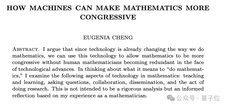 数学家郑乐隽(Eugenia Cheng)认为,技术已经在改变人们研究数学的方式,可以利用这些技术使数学更加包容,而不是使数学家变得多余。