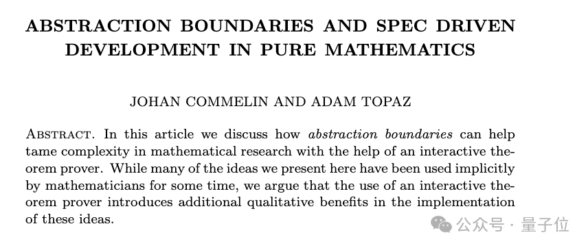 数学家Johan Commelin和Adam Topaz探讨了抽象边界(Abstraction Boundaries)如何在交互式定理证明器的帮助下,帮助控制数学研究中的复杂性。