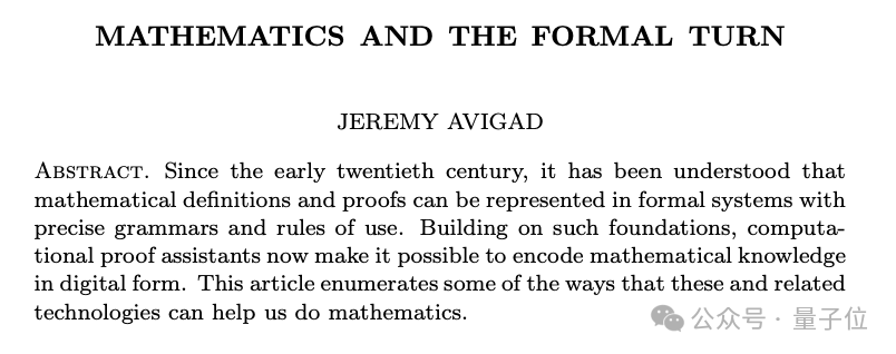 逻辑学家Jeremy Avigad讨论了自20世纪初以来,数学定义和证明可以在具有精确语法和使用规则的形式系统中表示。