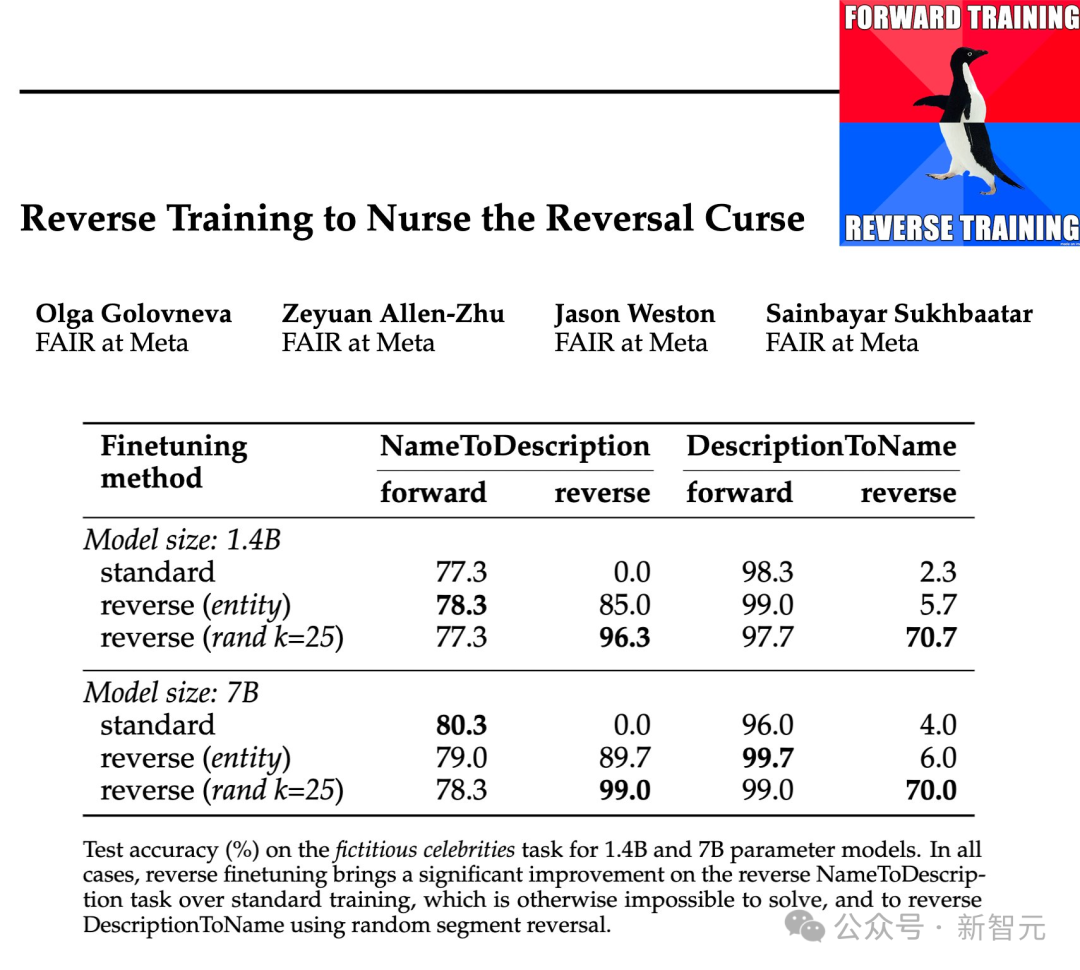 【新智元导读】大语言模型的「逆转诅咒」,被解开了。近日,来自Meta FAIR的研究人员推出了反向训练大法,让模型从反方向上学到了事实之间的逻辑,终于改进了这个困扰人们已久的问题。