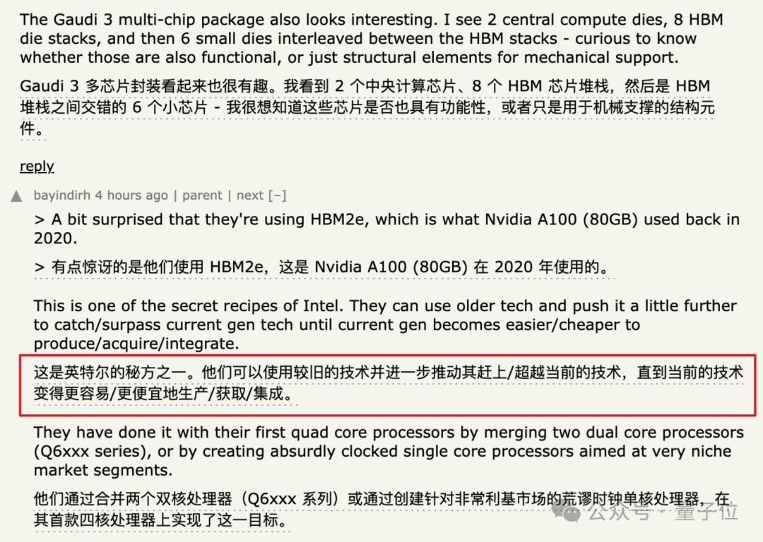 例如Gaudi 3封装的一处细节,即使用HBM2e存储芯片,有网友对此表示惊讶: