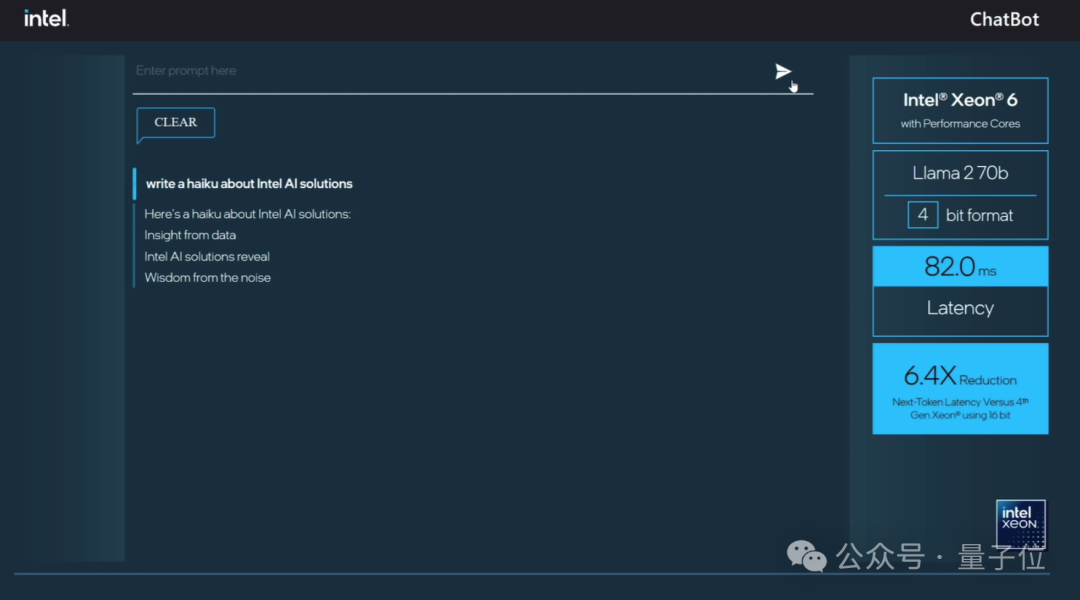 具体到精确的延时数值,第六代Xeon运行Llama 2 70B只有82ms。