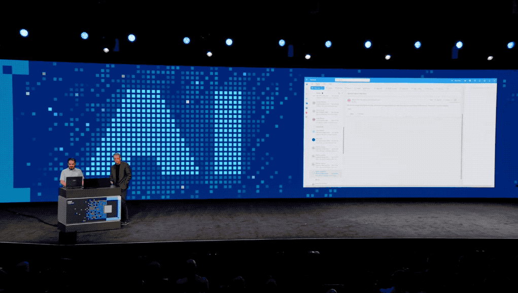 在现场,基辛格也展示了集成最新英特尔芯片的AI PC,能够快速处理的多项任务,例如快速处理邮件: