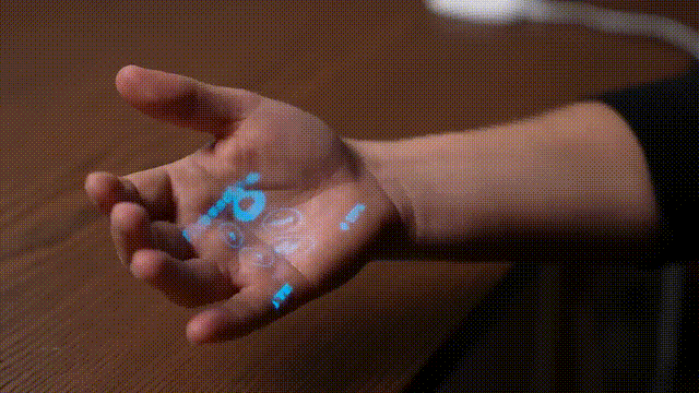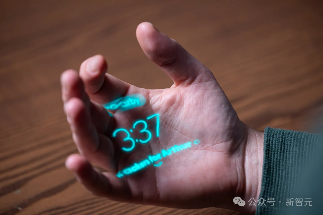 在使用时,你只需伸出手掌,Ai Pin就会在上面投射出一束绿色的激光。 不管是解锁设备,还是连接Wi-Fi,或者显示虚拟助手回答的文字转录,都可以通过这束激光进行交互。 其中,向外拉手是增加数字,向内拉则是减少数字,选定每个数字则是通过捏合同一手的两个手指来实现的。