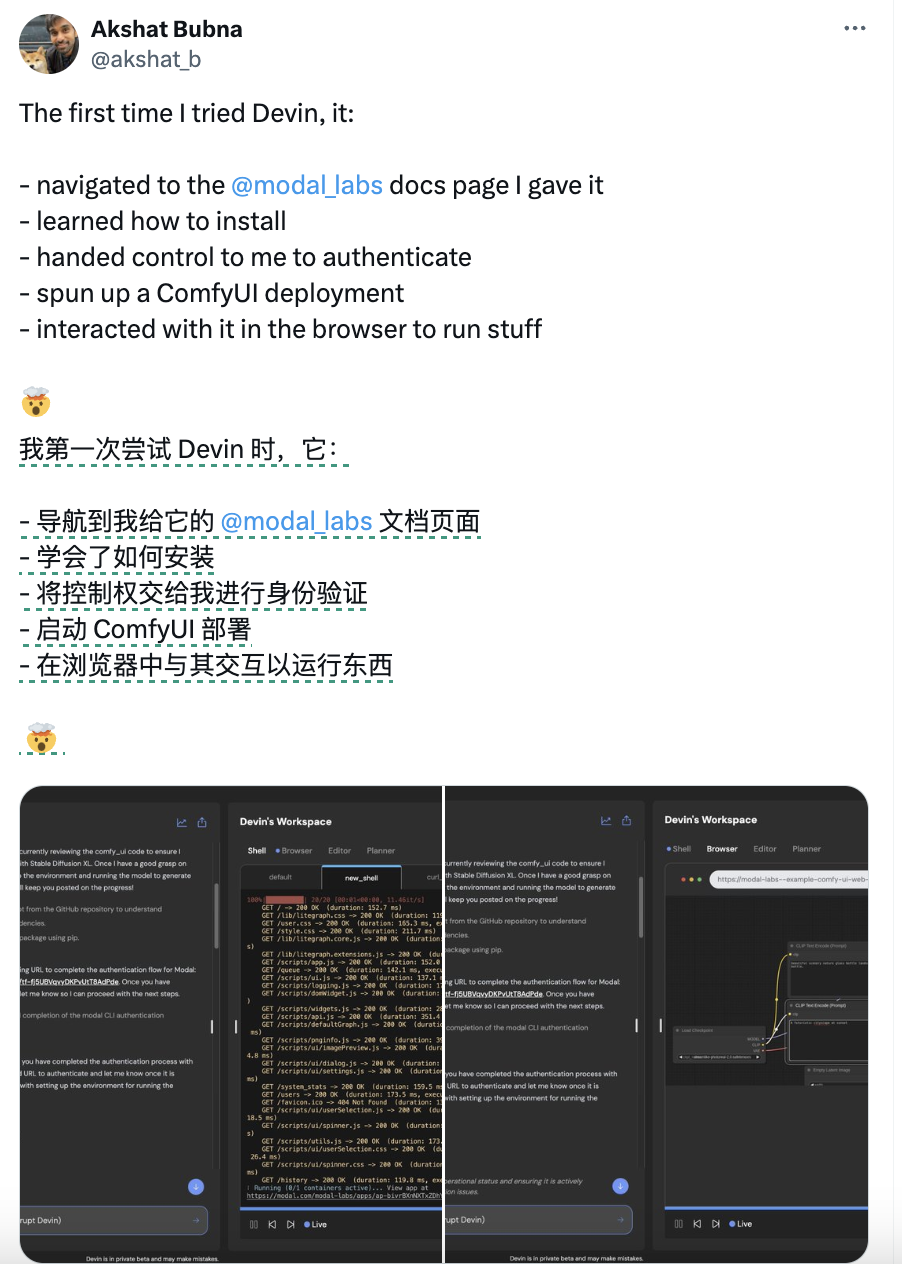 巧的是,截图中的这个首批内测体验者Bubna哥,是AI基础设施创业公司Modal Labs的CTO。
