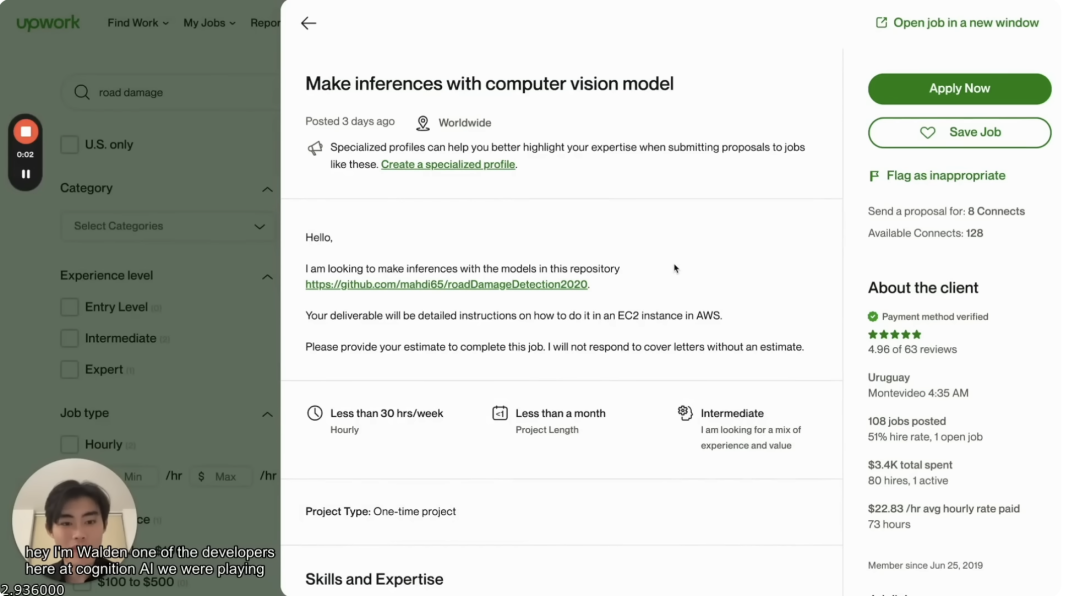 此外,光头哥花了半个多小时,把Devin演示视频中的upwork任务完成了一遍——而Devin完成任务可能用时6个多小时。