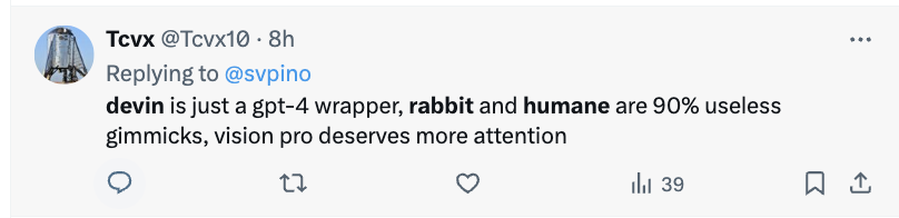 甚至还列出了三大炒作典范:Devin、rabbit、Humane。