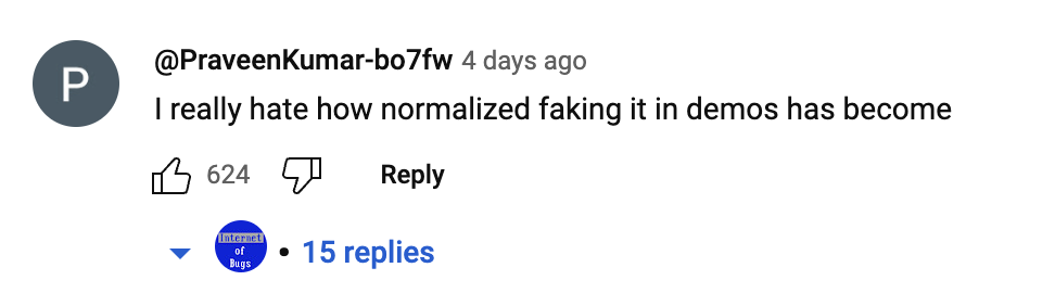 有意思的是,演示造假事件爆出来的时间,距离Cognition AI推出Devin仅过去了一个月。