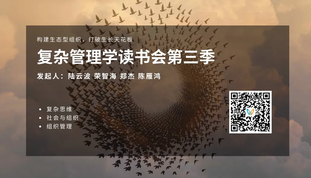 集智俱乐部「复杂管理学读书会第三季」邀请同济大学组织仿真中心主任陆云波,东华大学教授荣智海,以及产业界复杂科学推动者、树兰医疗集团总裁郑杰,北大纵横合伙人陈雁鸿共同发起。新的一季读书会聚焦在自组织、多主体模拟、创新型管理、网络等方向,分享复杂系统管理领域的前沿理论、经典科普图书,旨在促进学术交流、知识分享以及跨领域合作,共同探讨复杂科学理论在复杂系统管理场景的应用、实践与展望,一起应对复杂多变的人类发展未来。这是集智俱乐部的第一个全国性线下读书会,从2024年4月20日开始,每周六下午3:00-5:00,预计持续10~12周,期待您的积极参与,和我们一起知行合一,践行理想!