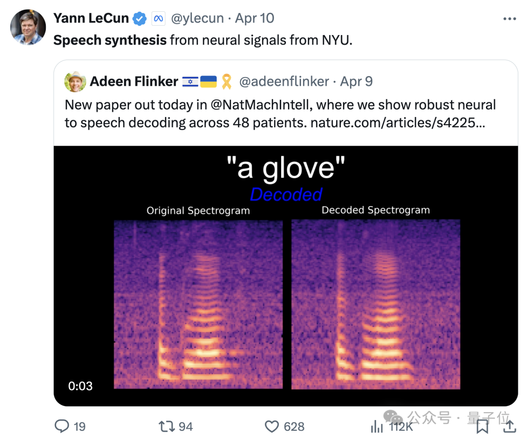 脑机接口最新进展登上Nature子刊,深度学习三巨头之一的LeCun都来转发。