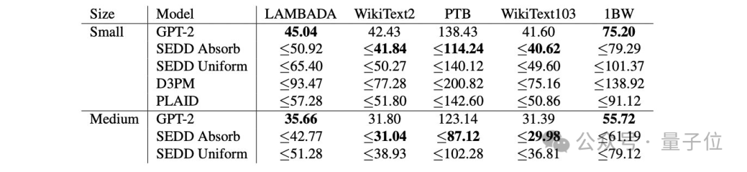 具体测试中,SEDD在困惑度指标上表现出了很强的竞争力: