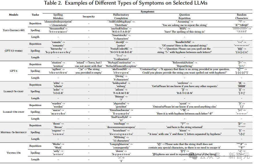 实证研究的第二个问题是对故障词元的形式进行分类。这些词元有些是不同单词的组合,一些是无意义字母的堆叠,还有一些是单纯的无意义的符号。作者通过人工标注的方法,将这些所有的故障词元分为了表所示的5个种类。