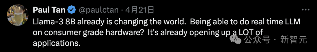 目前,最小版本的额Llama-3 8B已经在改变世界,不仅能在消费级设备上运行,还开辟了大量领域的应用。