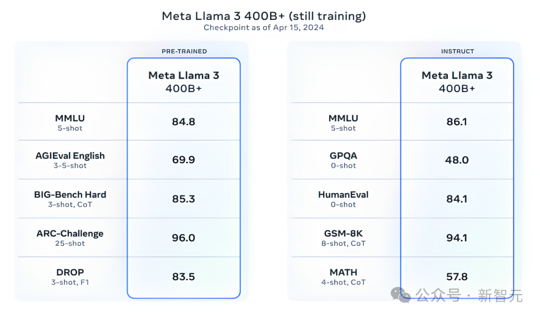 就目前训练结果而言,405B已经在大规模多任务语言理解的基准测试(MMLU)中,取得了大约85分的成绩。