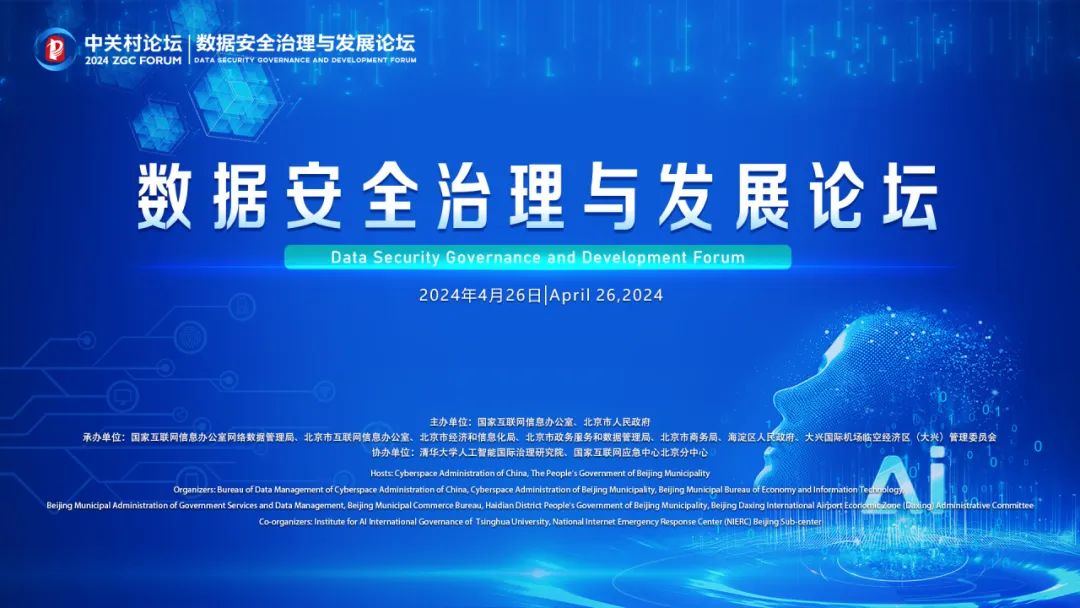 2024中关村论坛数据安全治理与发展论坛将于4月26日上午在中关村国际创新中心隆重举办。论坛由国家互联网信息办公室和北京市人民政府联合主办,国家互联网信息办公室网络数据管理局、北京市互联网信息办公室、北京市经济和信息化局、北京市政务服务和数据管理局、北京市商务局、海淀区人民政府、大兴国际机场临空经济区(大兴)管理委员会共同承办。清华大学人工智能国际治理研究院及国家互联网应急中心北京分中心作为此次论坛的协办单位。