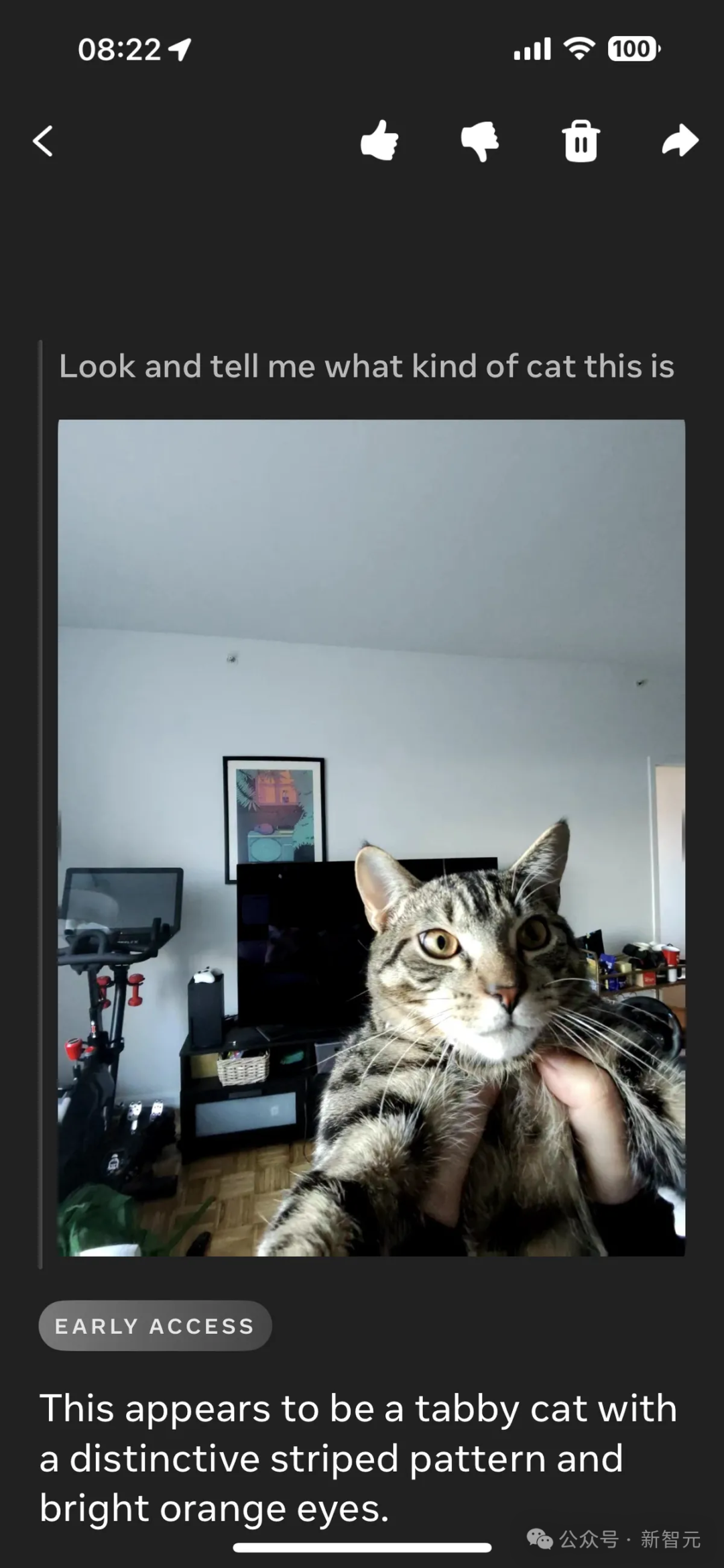 他还让智能眼镜给一张萌宠的照片,配上了有趣的描述。