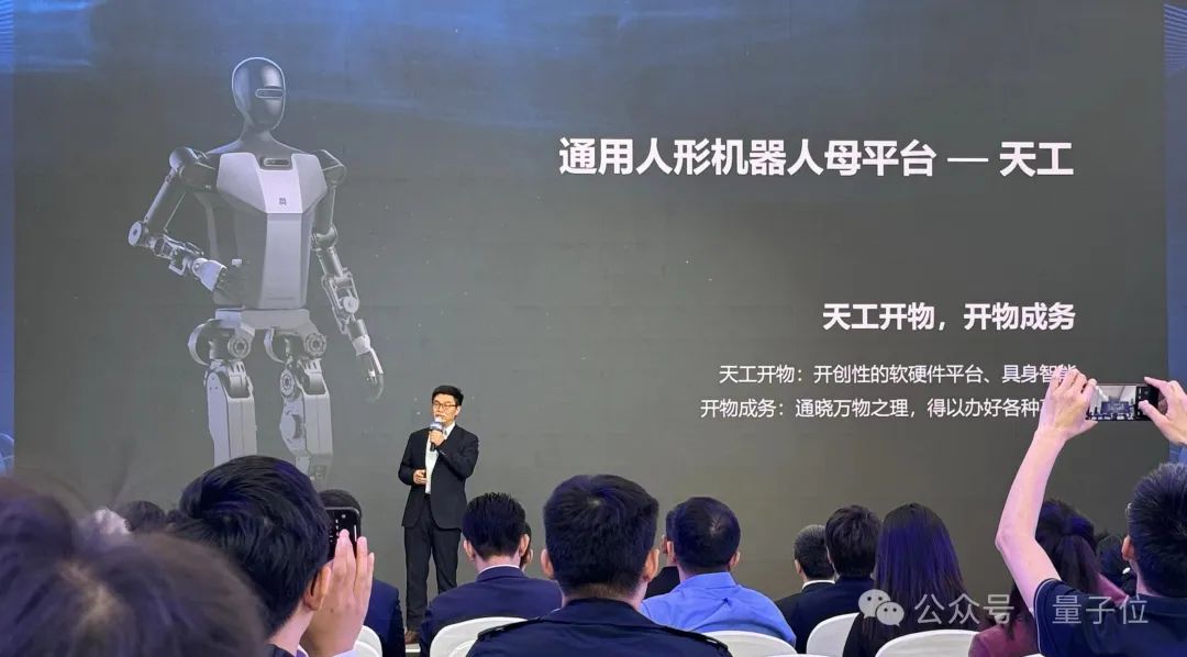 发布会现场,天工一路小跑登台亮相,现场观众一整个坐不住: