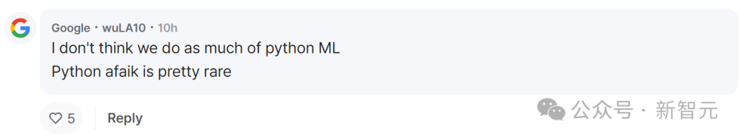 有谷歌的员工表示,我们好像在机器学习上没有怎么用到Python。