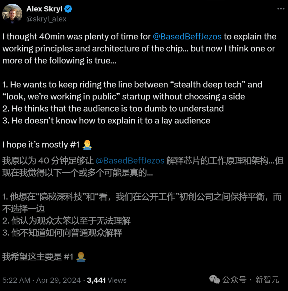 视频地址:https://www.youtube.com/watch?v=QjVOfM2EBnE整个访谈的画面,就是联合创始人Guillaume Verdon和主持人Jason Carman的一问一答。「多么吸引人的纪录片啊!为什么社交媒体上没人讨论,太奇怪了。」但仔细听完这段访谈的一位网友,给出了这样的反馈:整整40分钟,都没有解释清楚芯片的工作原理和架构……他猜测,原因可能是创始人没有想好是将技术保密,还是选择向公众公开。或者,就是他觉得观众太笨无法理解,或者纯粹是表达能力太差。看到网友的质疑,公司成员Beff Jezos赶紧发了条超长的QA,重新解释了一遍:问:模拟神经网络并不是新事物,IBM/Intel等公司尝试过类脑计算,为什么它们都没成功?答:确实,类脑计算已经被研究很长时间了。这些系统通常需要使用特殊的组件,如忆阻器(memristors)等,或者过度追求模仿生物特性,如脉冲神经网络(spiking neural networks)。但是,这些系统往往无法直接与最终应用对接,也很难找到有效的训练方法。而Extropic就在解决这些问题,还会通过论文分享自己的研究成果。在这方面想取得突破非常难,因为确定性的微分方程可以通过固定的开销进行离散化,并在数字计算机上解决,这就极大限制了模拟计算的加速潜力。随机动力学则与之不同。模拟随机系统的数字算法通常收敛性较弱,且每个时间步骤所需的计算量远超其确定性的对应算法。因此,尽管存在一些困难,采用随机模拟方法是有其合理性的。答:直到最近,我们才具备了构建真正随机模拟计算机的技术条件。即便在室温环境下,热波动也非常微小,只有非常微小的物理系统才会受到显著影响。而在电路设计上,这种微小化要求意味着需要具备几百阿托法拉(aF)的特征电容,这种电容只能通过较新的CMOS工艺来实现。因此,以前从未有过真正的基于热动力学的电路计算机被造出来。也是因此,随机模拟技术从未得到充分的试验。
