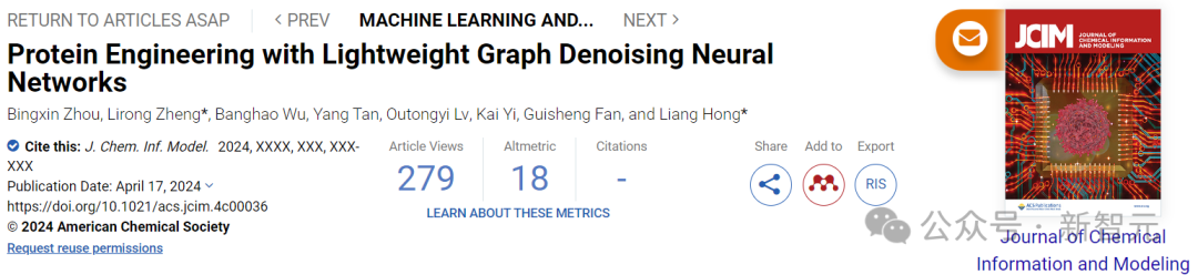 近日,上海交通大学自然科学研究院/物理与天文学院/张江高等研究院洪亮课题组,在生物信息学和人工智能研究领域的国际权威学术期刊JCIM(Journal of Chemical Information and Modeling)上发表最新研究成果:“基于微环境感知图神经网络构建指导蛋白质定向进化的通用人工智能 ”(Protein Engineering with Lightweight Graph Denoising Neural Networks)。