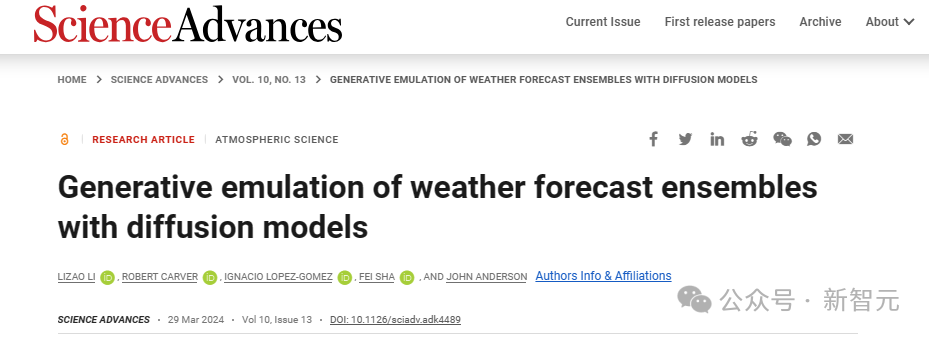 【新智元导读】天气本质上是随机的,为了量化不确定性,传统方法通常需要高昂的成本来物理模拟大量预测。谷歌最新研究登Science子刊,用生成式AI模型高效生成规模化的天气预报集合,为天气和气候科学开辟了新的机会。