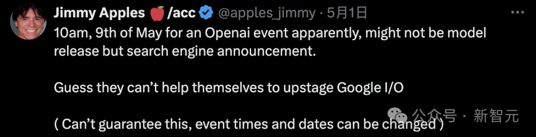 据Jimmy Apples在1日爆料称,OpenAI下一个大动作不发模型,而是「搜索引擎」,时间预计在5月9日。