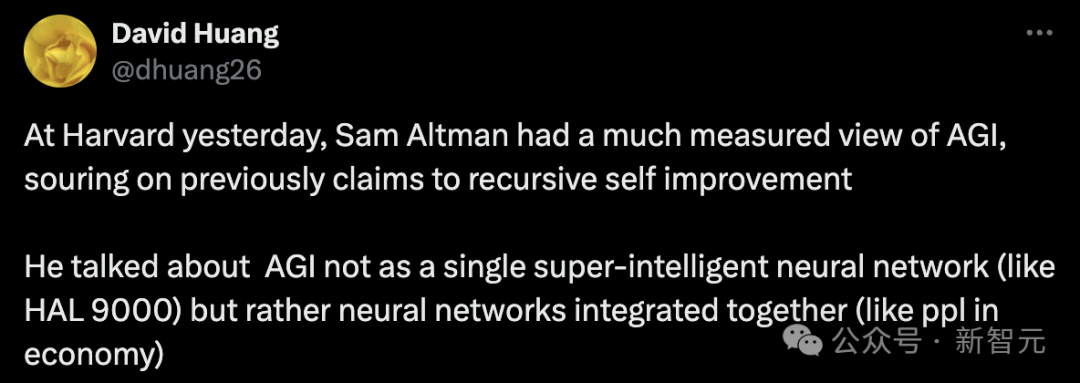 Sam Altman对AGI有了一个更加审慎的观点,并对之前宣称的「递归自我改进」的说法感到失望。