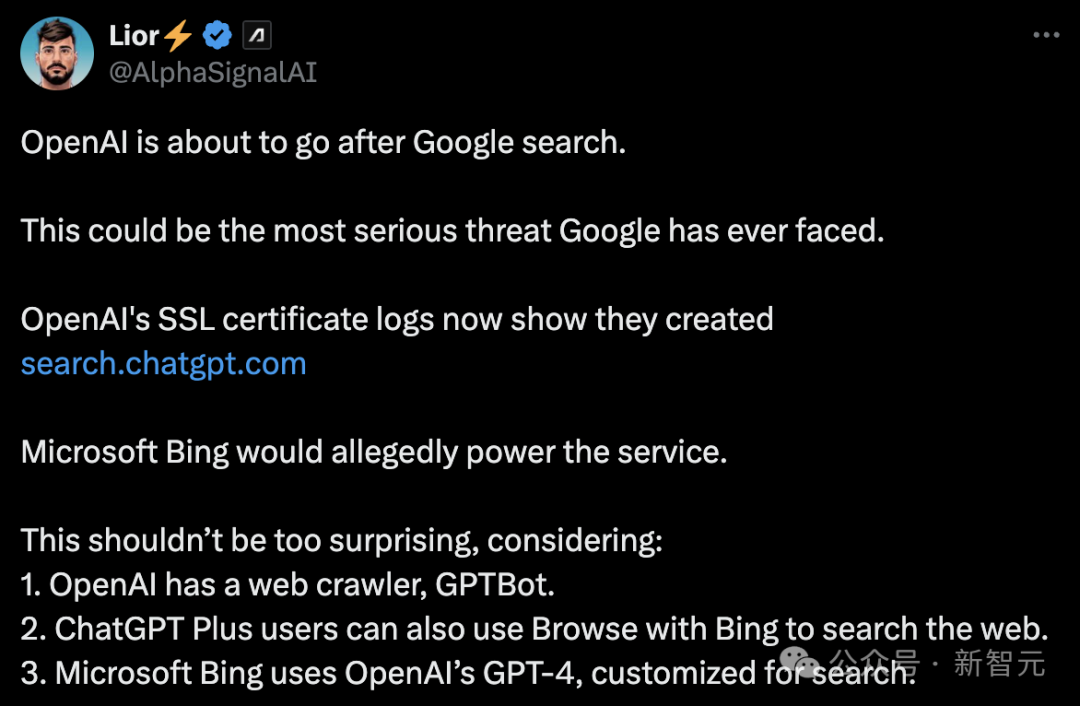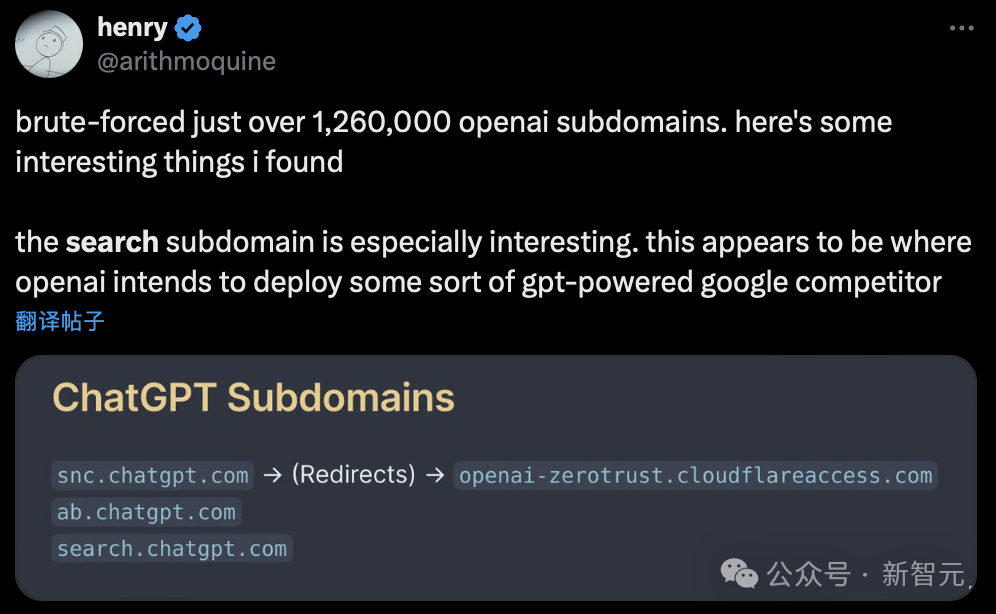 这似乎表明OpenAI打算在这个子域名下,部署某种由GPT驱动的谷歌竞争对手「搜索引擎」。