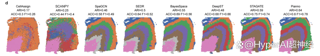 * 与最先进的空间聚类方法相比,Pianno 展现出了卓越的性能,为空间转录组学数据提供了新的视角