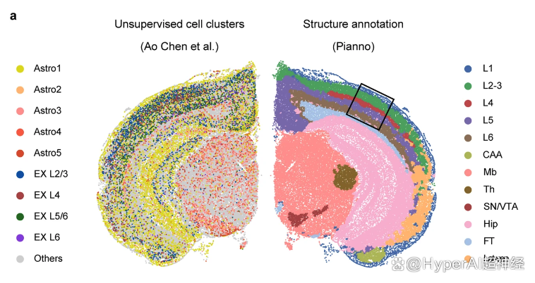 目前,基于机器学习的方法已被广泛应用于识别空间点的群集,并使用标记基因解释其生物学身份。但这些方法通常因为缺乏与群集内已知结构建立明确联系的能力而受限。此外,手动注释常被用作辅助识别已知结构,但该方法常受限于研究人员的专业知识和主观判断,且无法应用于大规模分析当中。