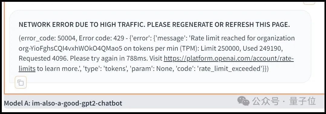 这次重新上线后,模型在一次报错中直接给出了跳转OpenAI平台网站的链接。