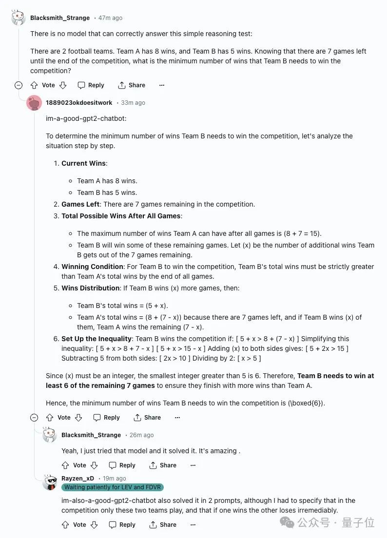 还有在解决物理题方面,有Reddit用户说im-also-a-good-gpt2-chatbot能解答出其他模型都答不对的物理题。