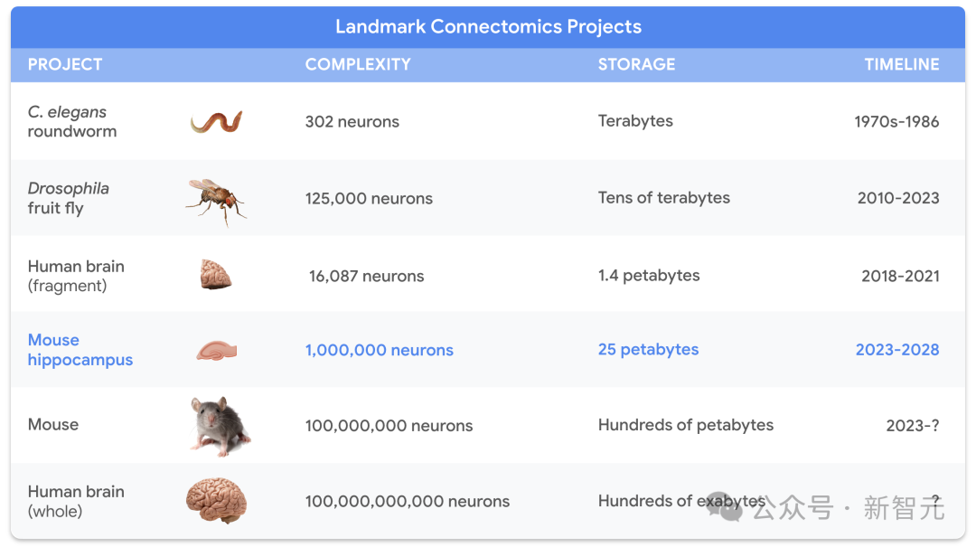 十年前,谷歌连接组学团队成立之时,它们的愿景之一就是使用AI的前沿成果处理生物学领域庞大的数据集,才能从302个神经元的线虫,发展至百亿数量级细胞的复杂生物组织。