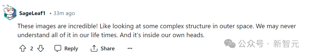 网友们纷纷表示:「这些图像太令人震惊了,简直就像在外太空观察复杂的结构一样。可能在永生之年,我们都无法理解自己大脑里的一切。」