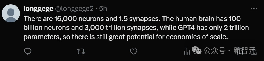 也有人有感而发:「人脑有1000亿个神经元和3000万亿个突触,而GPT-4只有2万亿的参数,所以,我们还有很大空间。」