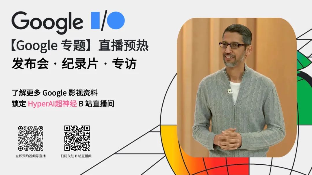 Google 将于当地时间 5 月 14 日举办 Google I/O 2024,届时 HyperAI超神经视频号和 B 站将实时转播,欢迎扫描下方二维码立即预约!