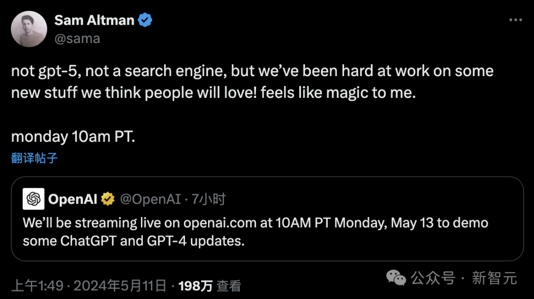 【新智元导读】OpenAI终于要放大招了!官宣定档下周一线上直播,预计发布全新AI语音助手,还有ChatGPT、GPT-4一系列更新。奥特曼澄清,没有GPT-5,也没有搜索引擎!