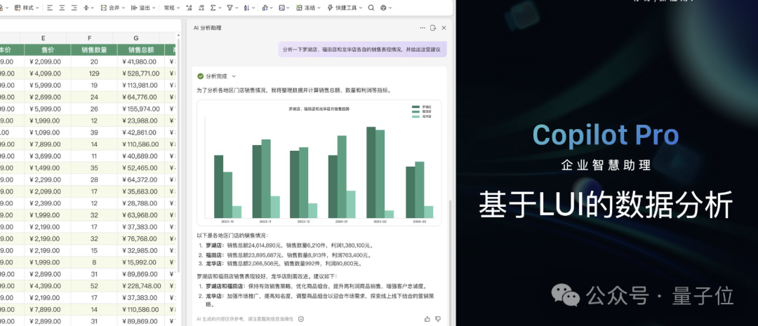 而今天,只需要跟大模型说你要分析什么数据,得出什么样的结论,想让它最后以什么样的方式呈现,大模型就能在背后生成相应的Javascript脚本、Python脚本、电子表格里的公式等,把你期望的这一切都做好,最后生成一个图表和结论性报告。