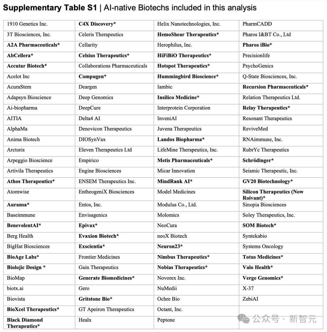 为了对整个行业进行具有代表性的调查,这项研究使用了超过100家AI原生的生物技术公司公开发表的研发管线数据,并进行了适时更新与交叉验证。