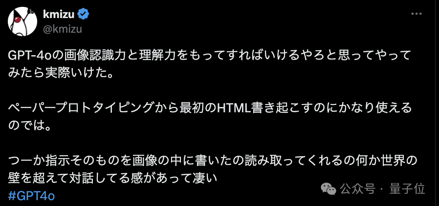 也有网友尝试利用GPT-4o,把写在纸上的原型转录为电脑内的初始HTML。